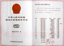 計量合格證書(shū) 制造計量器具許可證